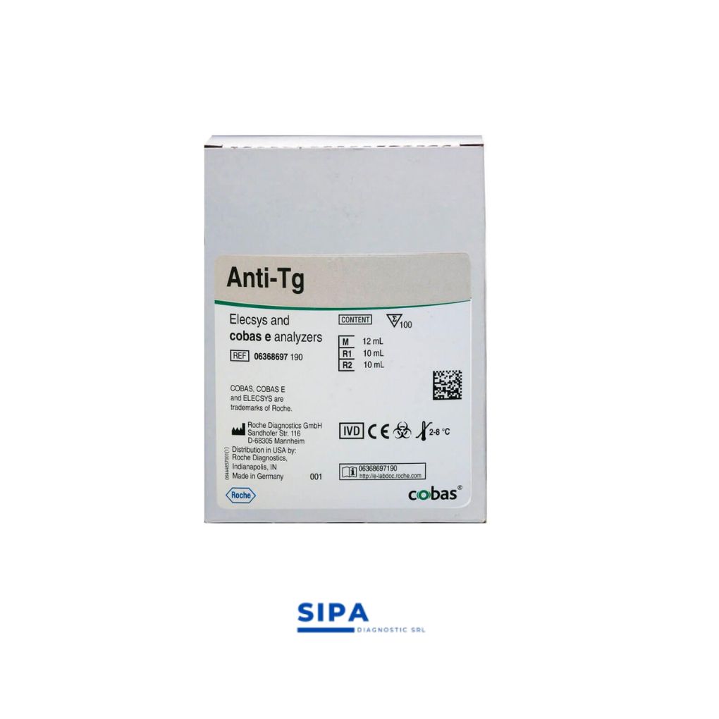 Immunoassay for the in vitro quantitative determination of antibodies to thyroglobulin in human serum and plasma. The anti‑Tg determination is used as an aid in the detection of autoimmune thyroid diseases. The electrochemiluminescence immunoassay “ECLIA” is intended for use on Elecsys and cobas e immunoassay analyzers.