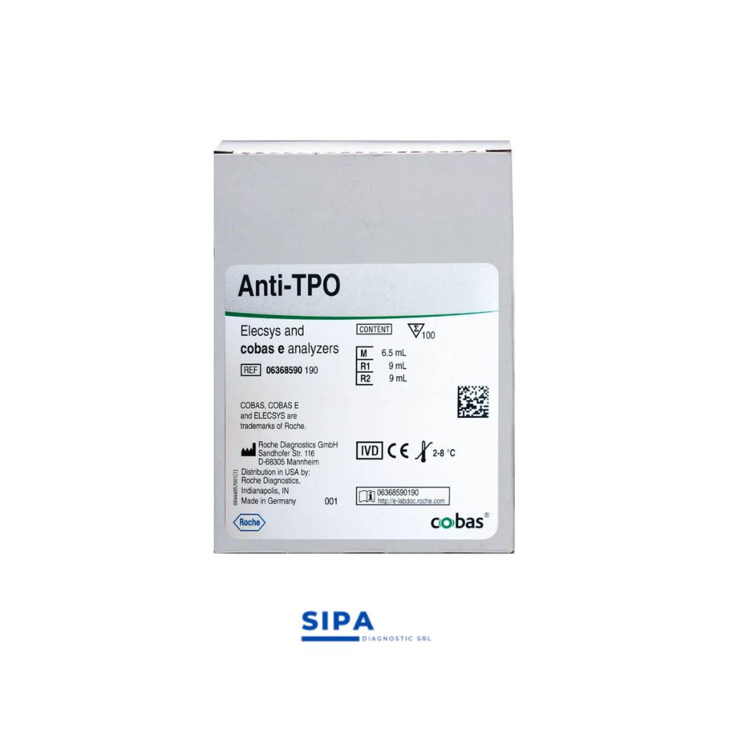 Immunoassay for the in vitro quantitative determination of antibodies to thyroid peroxidase in human serum and plasma. The anti‑TPO determination is used as an aid in the diagnosis of autoimmune thyroid diseases. The electrochemiluminescence immunoassay “ECLIA” is intended for use on Elecsys and cobas e immunoassay analyzers.