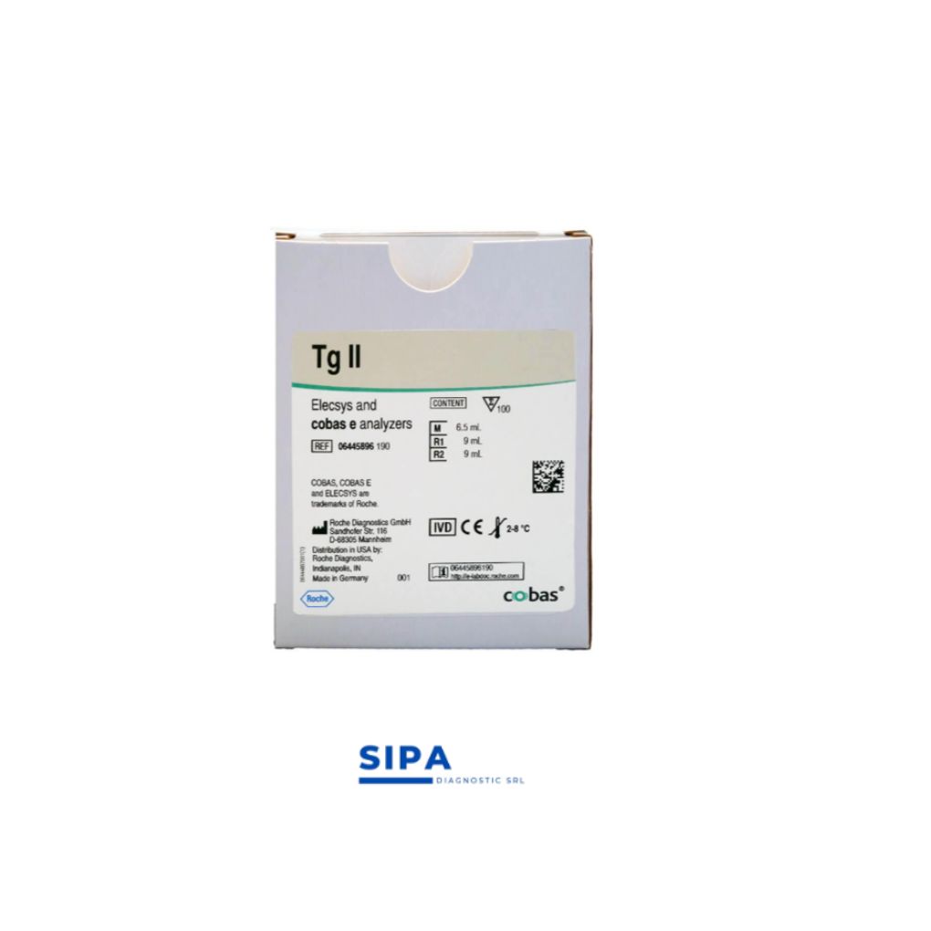 Immunoassay for the in vitro quantitative determination of thyroglobulin in human serum and plasma. Determination of Tg is used as an aid in monitoring after thyroid ablation. The electrochemiluminescence immunoassay “ECLIA” is intended for use on cobas e immunoassay analyzers.